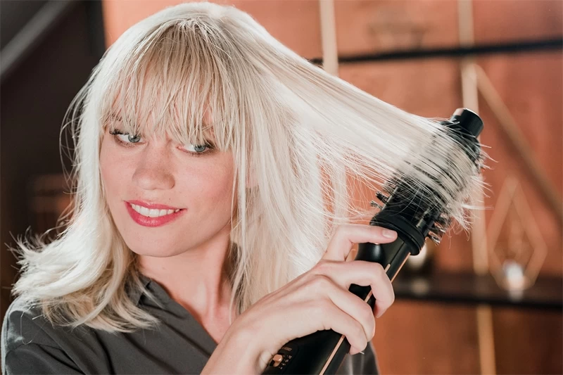 Placez une mèche de cheveux sur la brosse et faites glisser depuis la racine jusqu’à la pointe des cheveux. Répétez progressivement jusqu’à obtenir la coiffure que vous souhaitez.